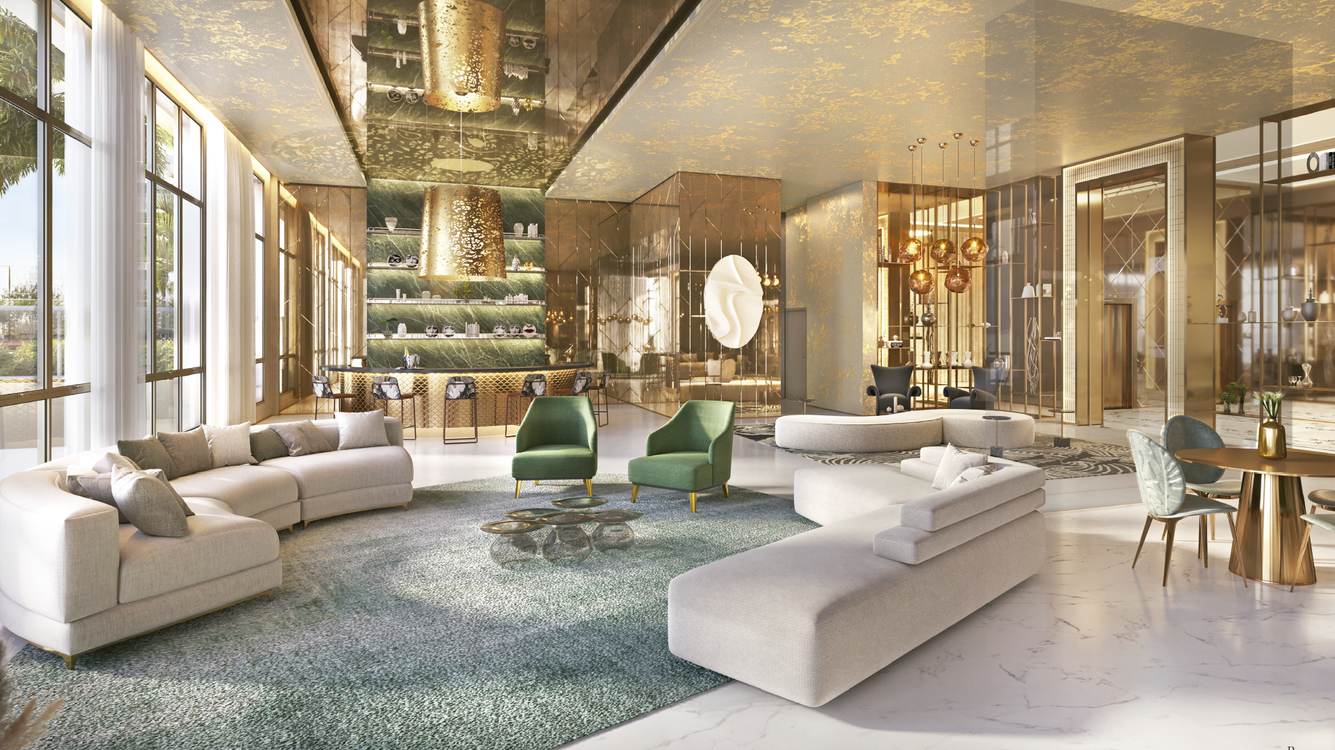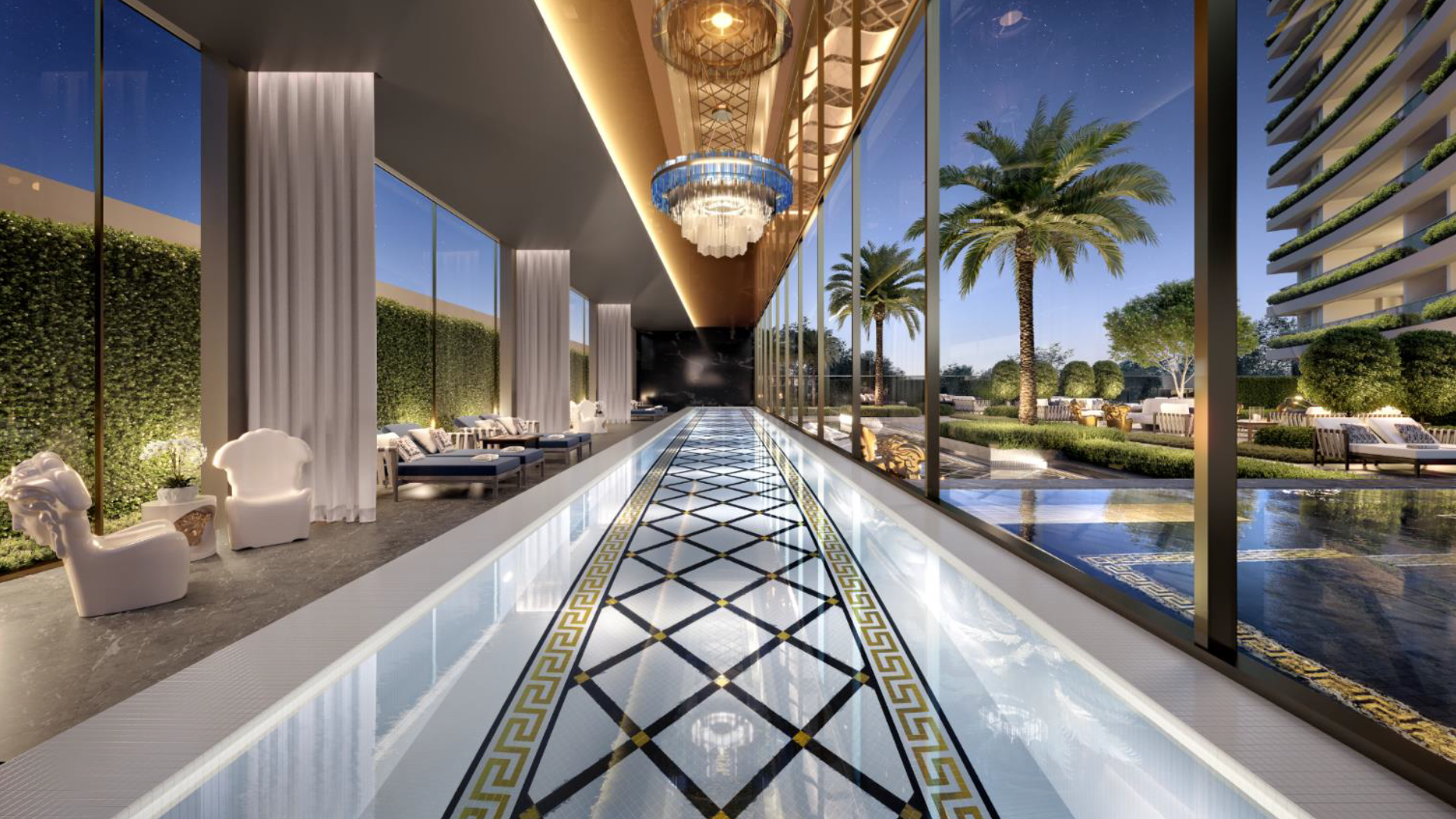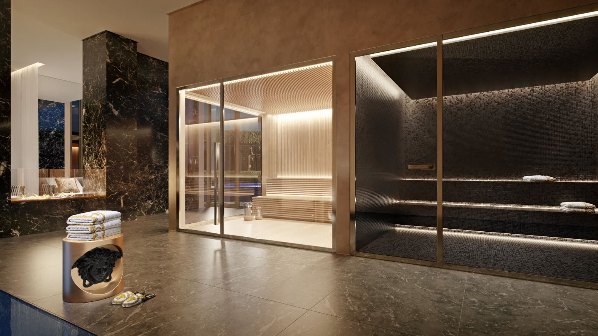 A Bianchini Lavvi Imóveis encontra luxo no fatto a mano e se inspira no centro internacional da arte, moda e design: a Itália, berço da Versace Home. Influenciada por essa estética, a empresa brasileira traz a exuberância da marca italiana para o projeto Villa. Os interiores são caracterizados pelo uso sofisticado de branco, preto, azul e dourado, que dão o tom do decor com assinatura Versace. As áreas de estar são enriquecidas com designs da Versace Home, que vão desde os papéis de parede e iluminação a móveis finos – todos feitos na Itália